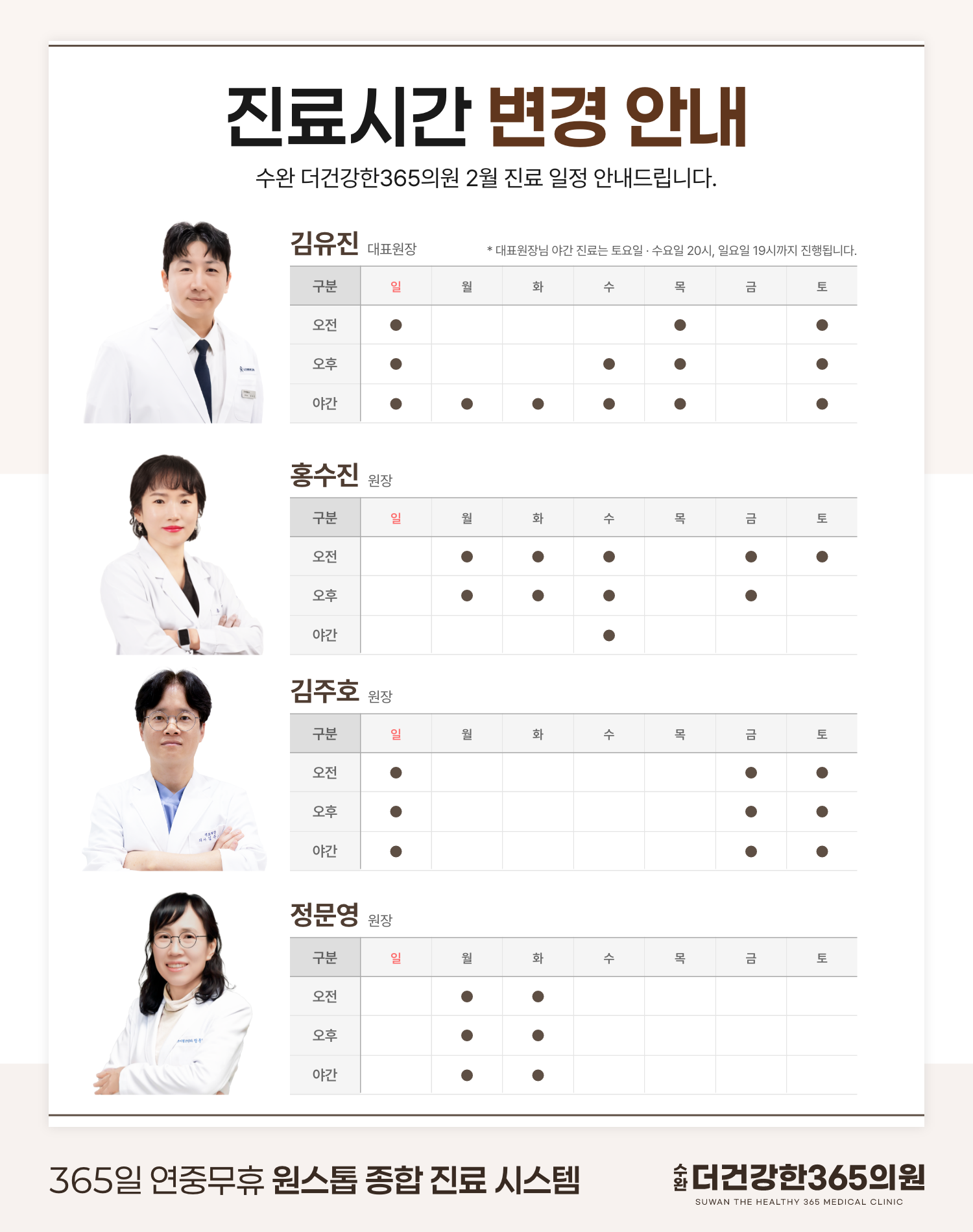 수완더건강한365의원 2월 진료 일정 안내 드립니다.